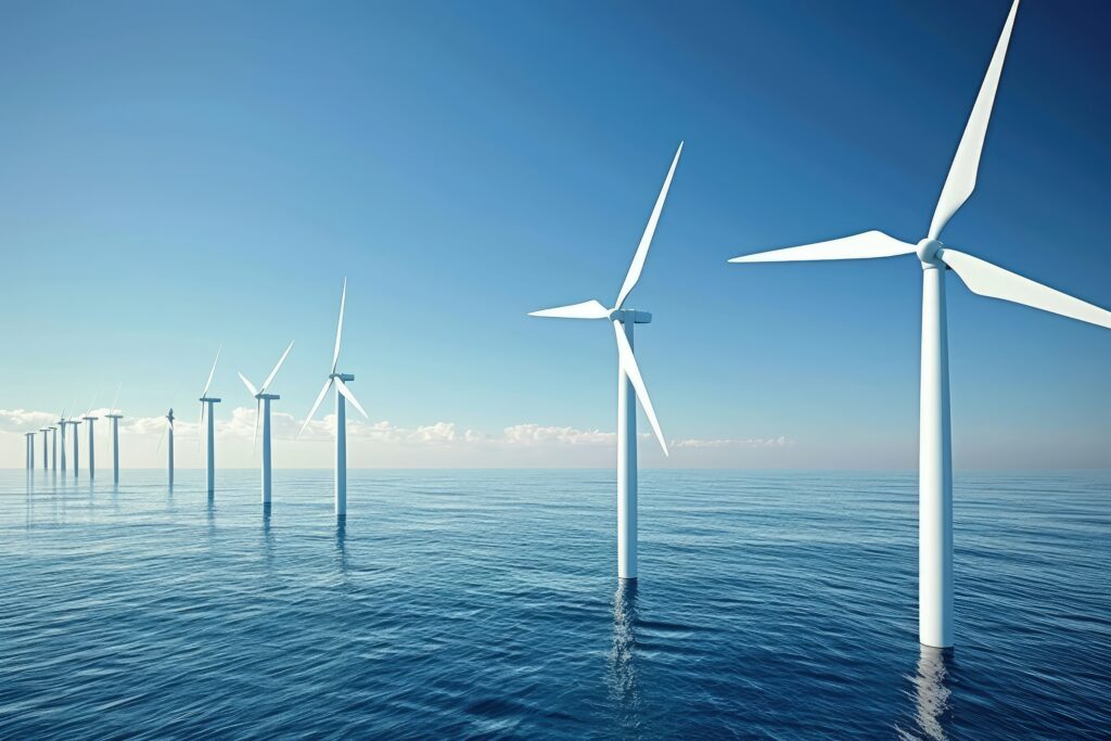 An offshore windmill farm stands tall in the ocean, harnessing the power of wind energy to generate clean and sustainable electricity, contributing to renewable energy efforts --ar 3:2 --style raw --stylize 50 Job ID: e2898427-d1b1-4afe-a0a7-6debf1c2424d
